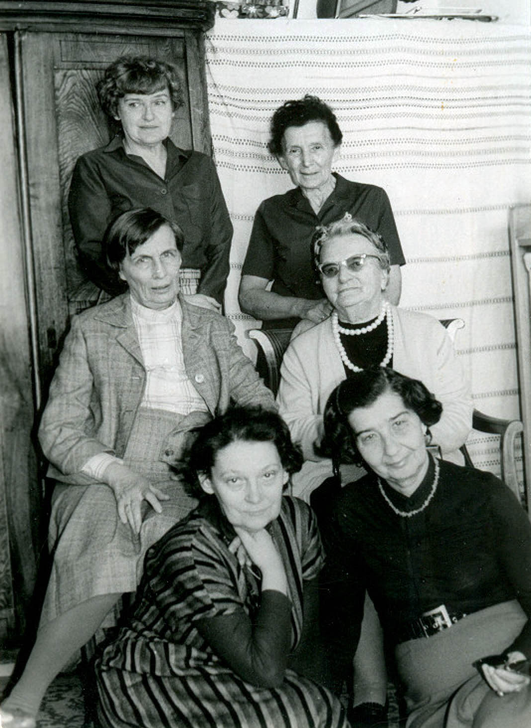 Zofia Schuch-Nikiel i przyjaciółki z Powstania Warszawskiego, lata 70. W prawym rzędzie, w środku Maria Jasiukowicz, wdowa po Stanisławie Jasiukowiczu.